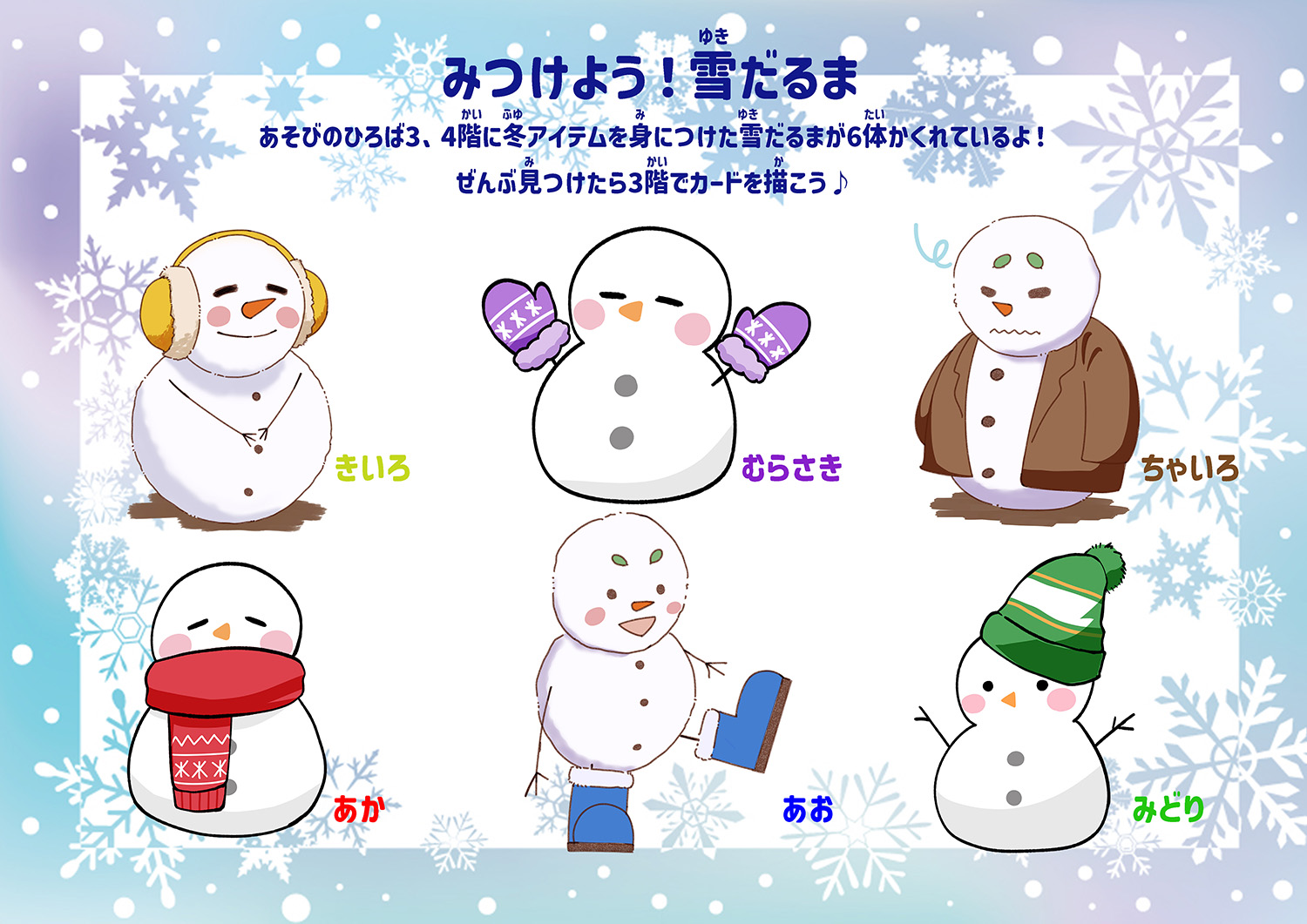 21日から「みつけよう!雪だるま」を開催しています!