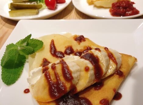 | 内容 | アイスコーヒー、米粉クレープキャラメルソースかけ、グリルドポテト、ピクルス |