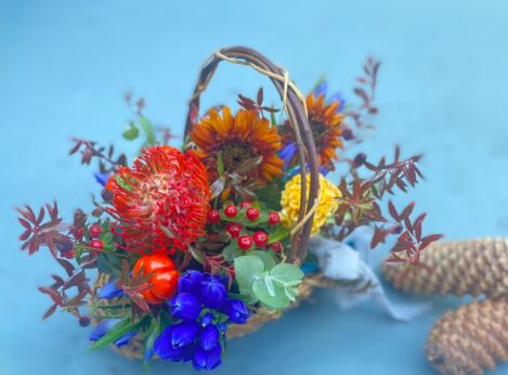 秋のお花を使ったフラワーバスケットで、お家に秋の彩りを添えましょう。