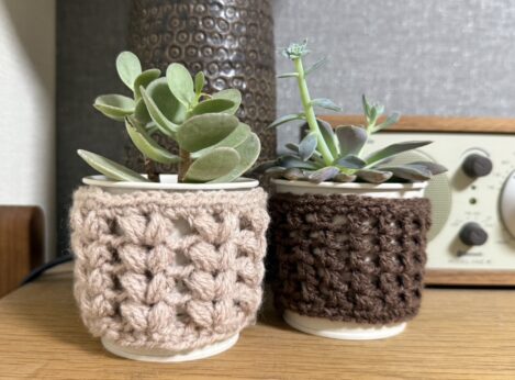 癒しの多肉植物に馴染む、鉢カバーを編みます。