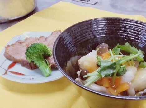 お正月に残るお餅などを使って料理を習います。