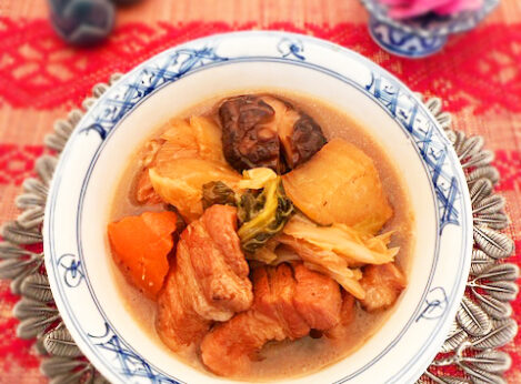 内容 豚肉と大根のあつあつ野菜煮込み(トムチャプシャイ)、海老のさつま揚げと自家製ソース(トートマンクン)、黒ごま豆乳汁粉(チーマーウー)