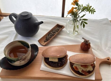 | 内容 | 春のウエルカムティー桜茶、緑茶から煎るほうじ茶、ご褒美玉露、自然栽培米粉のどら焼き(大島餡とさつまいの餡)、さといらずのお茶受け、季節の漬物 |