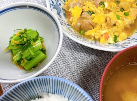 | 内容 | ごはん、お味噌汁、季節野菜のぬた、親子煮 |