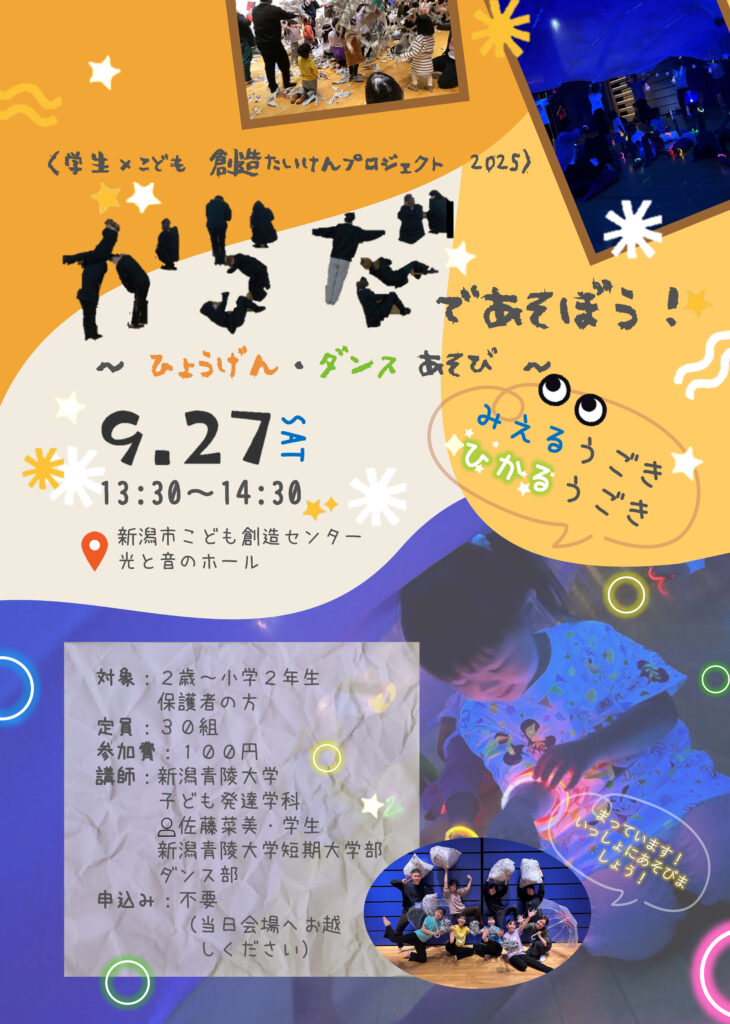 | 講師 | 新潟青陵大学 子ども発達学科 佐藤菜美・学生/新潟青陵大学短期大学部 ダンス部 |