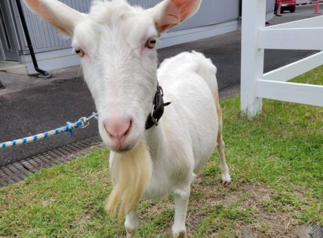 クローバー広場でヤギが皆をお出迎え!