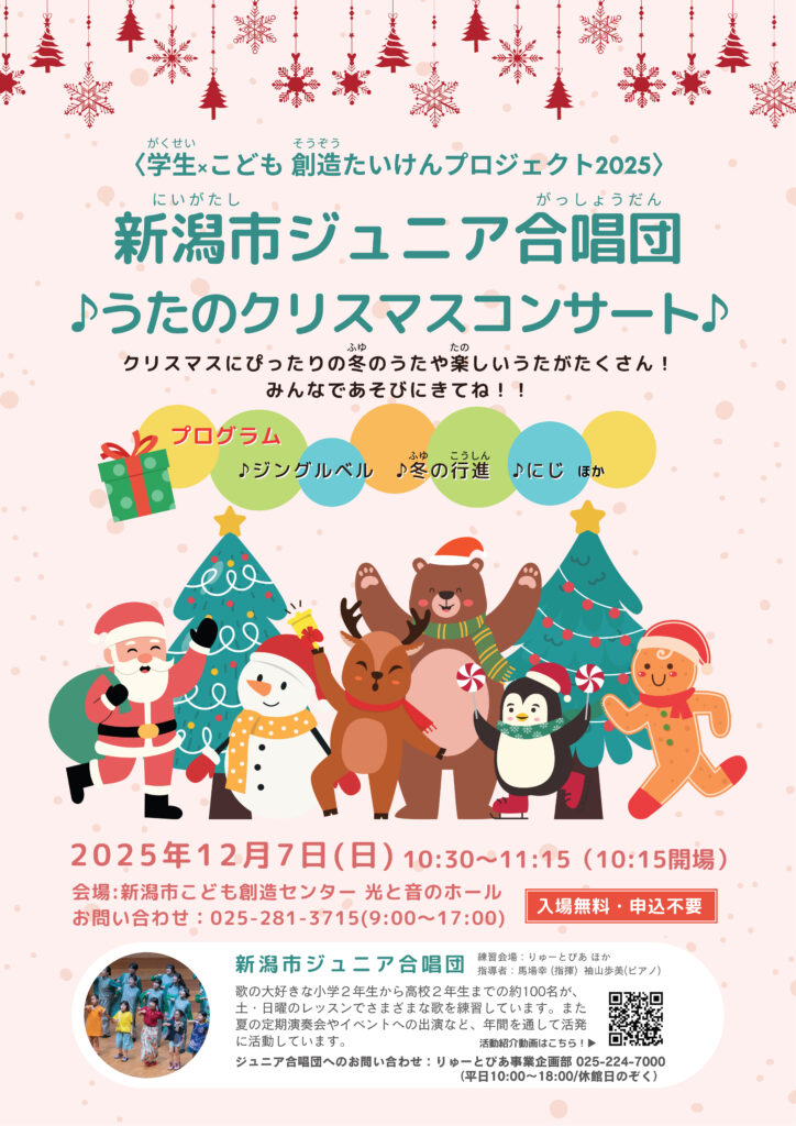 | 問合せ | 新潟市こども創造センター 025-281-3715(9:00~17:00) |
