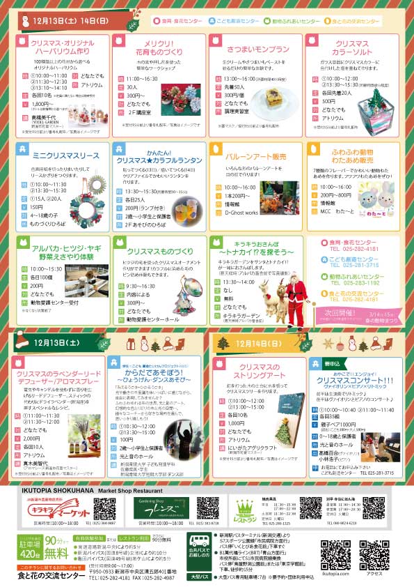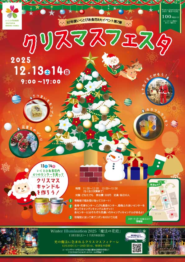 今年も待ちに待ったクリスマスシーズンが到来します。皆様に笑顔をお届けするいくとぴあ食花の冬の一大イベント「クリスマスフェスタ」を開催いたします。