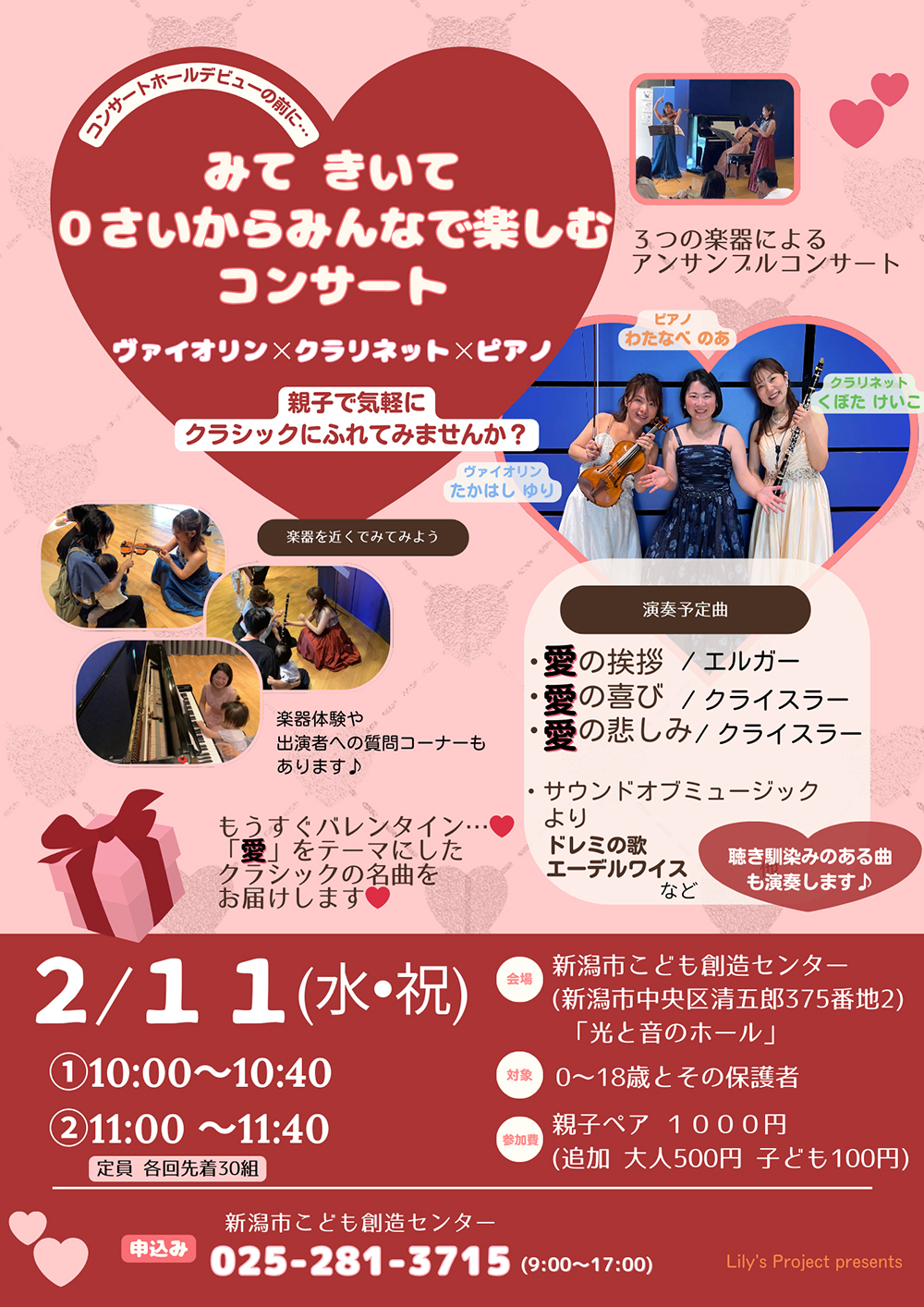 みて きいて 0さいから みんなで楽しむコンサート~ヴァイオリン・クラリネット・ピアノ~(2/11水)