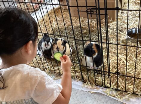 ウサギとモルモットにえさをあげることができます。