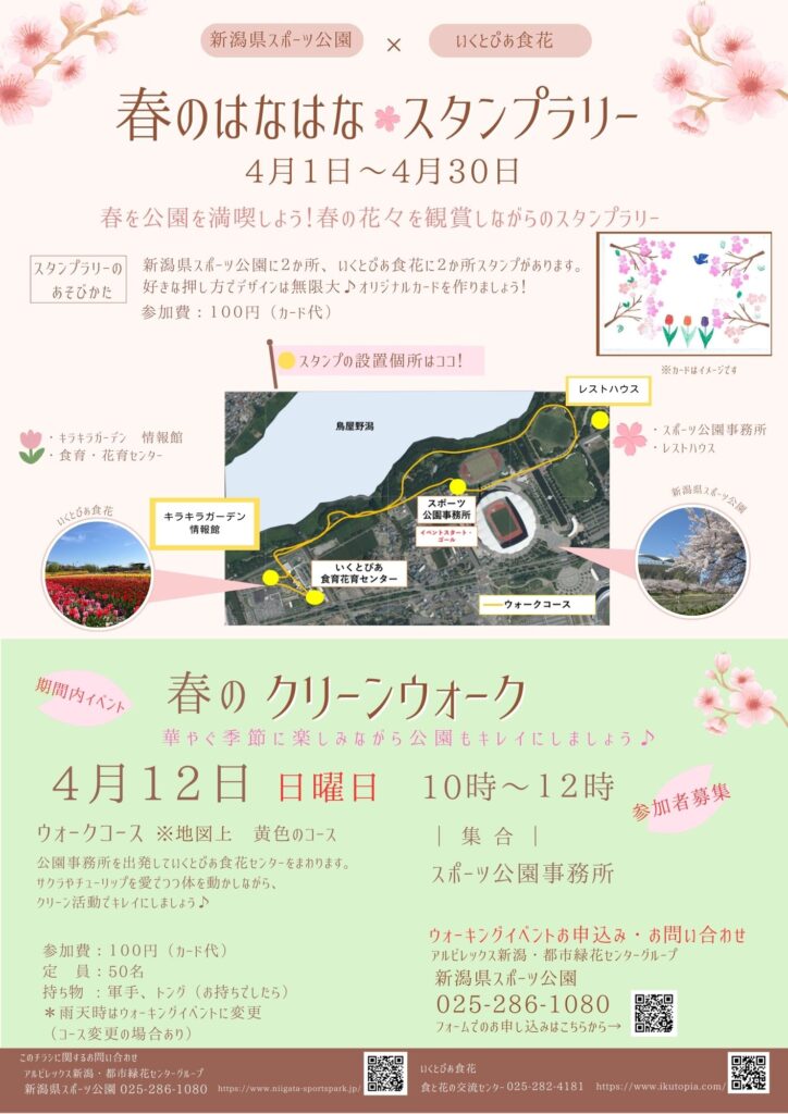 桜やチューリップが見頃を迎えるこの季節、鳥屋野潟エリアをウォーキングしながらスタンプを集めて、