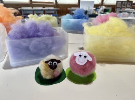 ふれあいセンターのヒツジの毛を使った