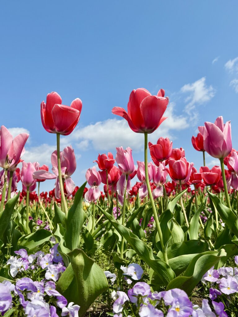 | いくとぴあ食花キラキラガーデンのチューリップが見頃を迎えます! ガーデン内には約2.5万球45品種のチューリップが咲き、黄色い菜の花の上を優雅に泳ぐこいのぼりの姿も一緒に楽しむことができます。 春の訪れを感じさせるガーデンで素敵なひとときをお過ごしください。 皆さまのお越しをお待ちしております。 チューリップの開花状況につきましては、「お知らせ」覧やいくとぴあ食花公式Instagramにてご案内いたします。 |