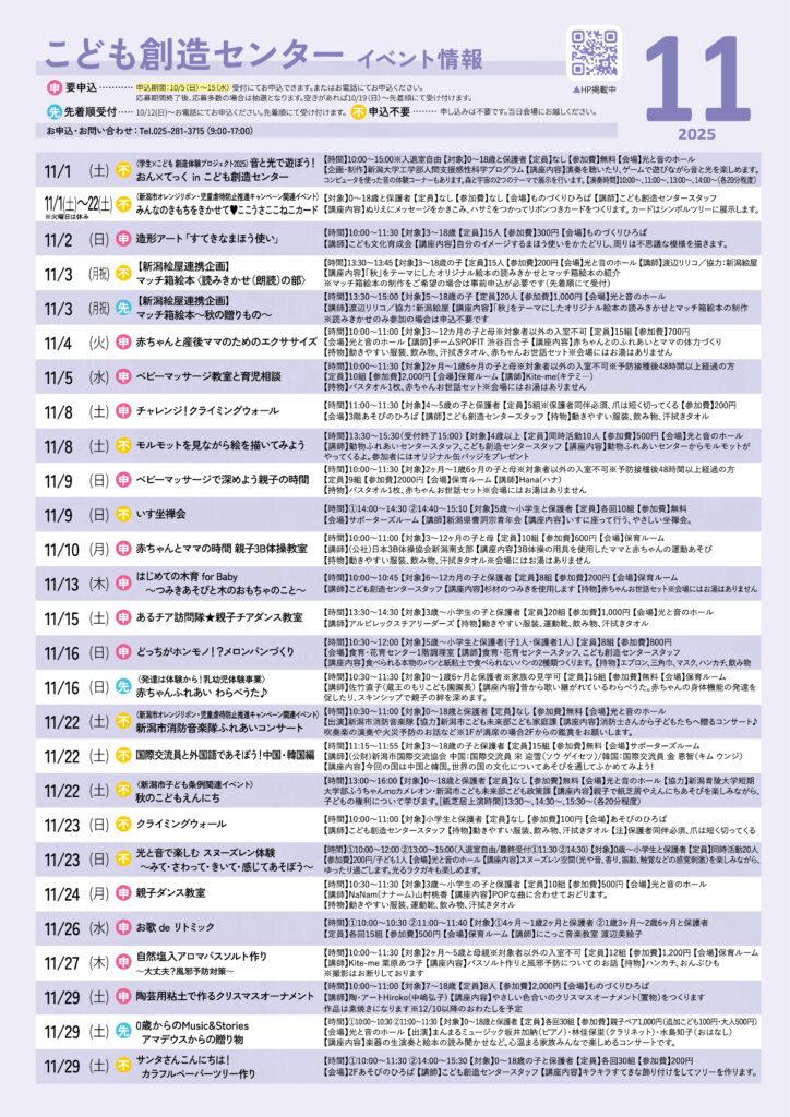 【11月のイベント一覧】申込受付開始です!