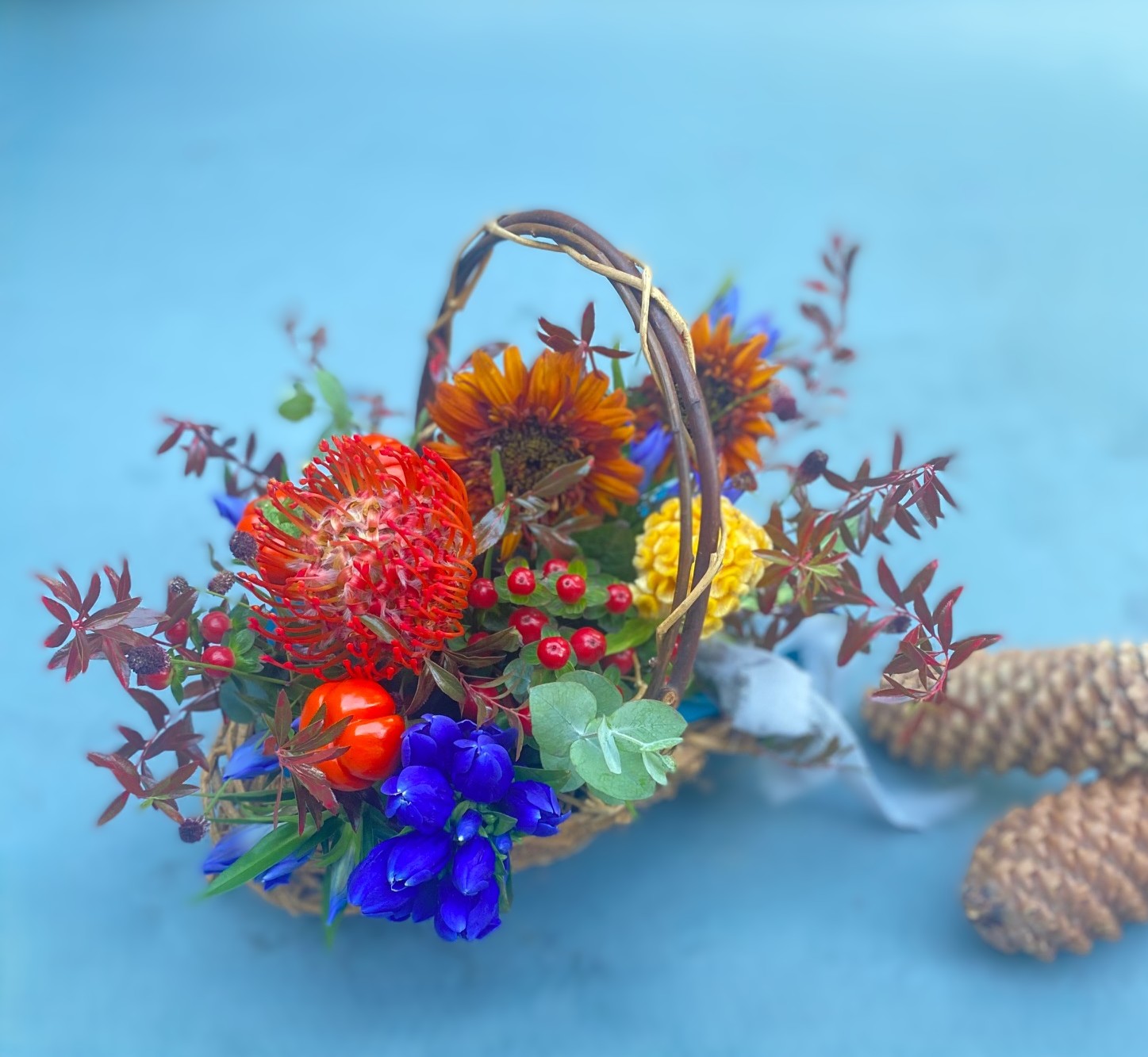 〇「秋の深色フラワーバスケットアレンジ」