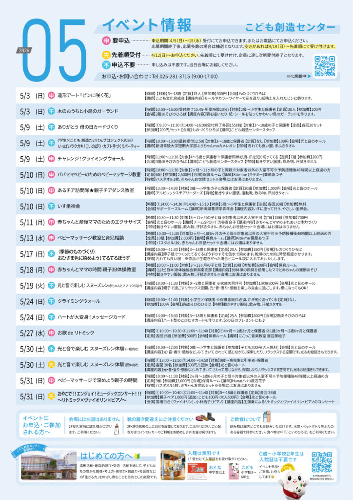 2026年5月のイベント一覧です😊 要申込のイベント受付スタート!! ぜひチェックしてくださいね😉 先着順受付は4/12(日)よりスタートです✨